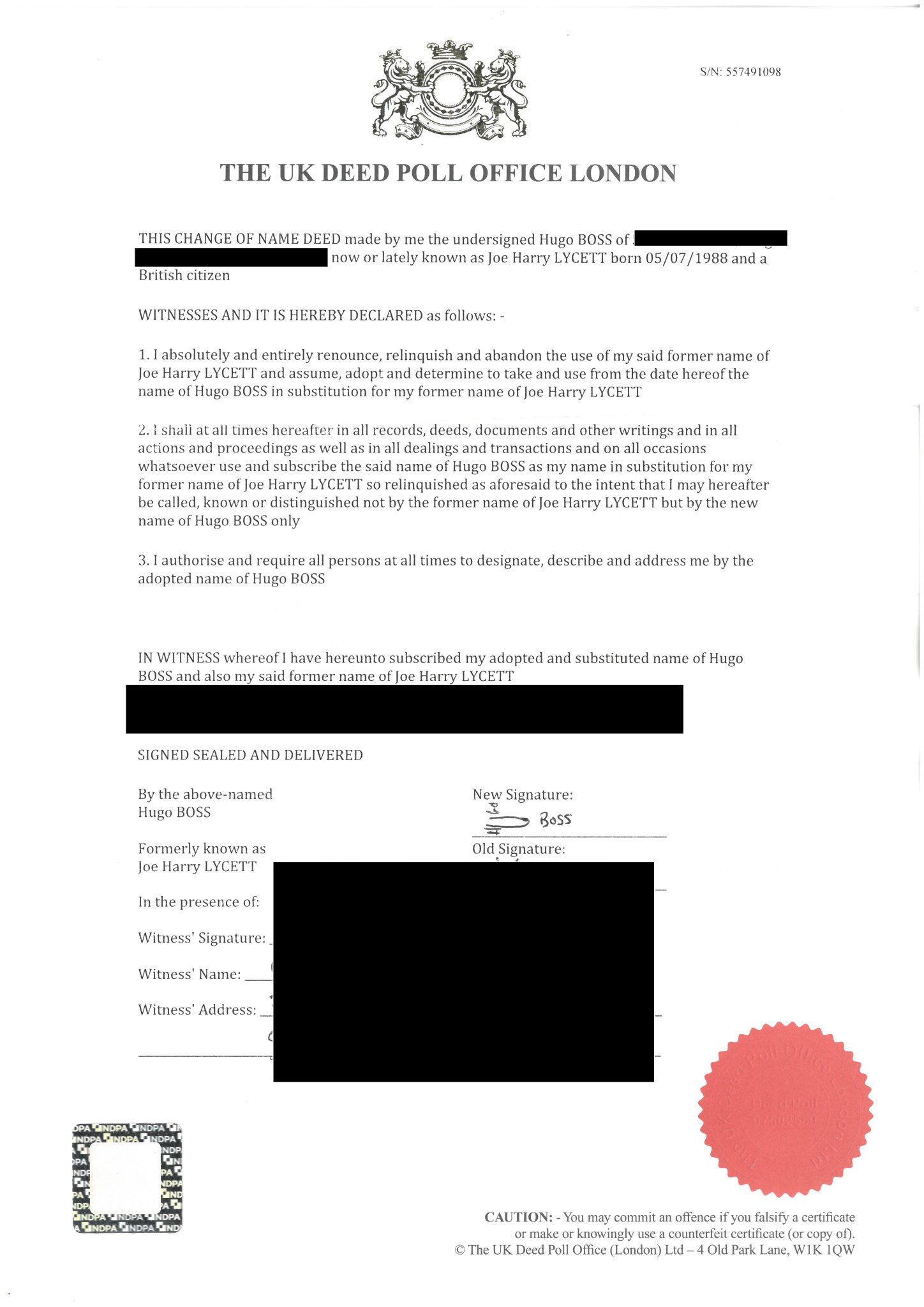 Joe Lycett On Twitter It S Clear That Hugoboss Hates People Using Their Name Unfortunately For Them This Week I Legally Changed My Name By Deed Poll And I Am Now Officially Known